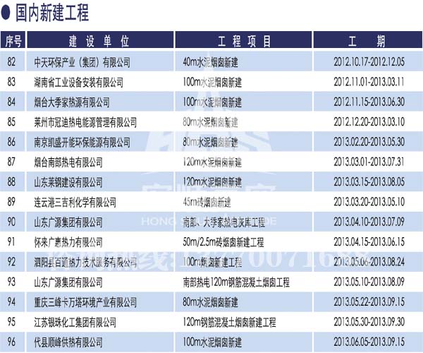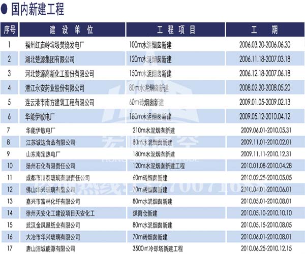 宏順建設(shè)工程有限公司是國(guó)家批準(zhǔn)成立的專(zhuān)業(yè)高空作業(yè)企業(yè):承攬過(guò)(國(guó)內(nèi).國(guó)外)煙囪新建、煙囪防腐、磚煙囪新建、煙囪改造、煙囪維修、煙囪脫硫防腐、煙囪拆除加高、煙囪滑膜等高空作業(yè)工程。具有“不搭腳手架 、 不需要停產(chǎn)”施工特點(diǎn)。
